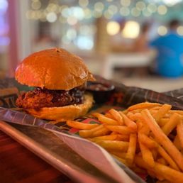 Me and the wife found this place while walking around. The food was really good service was little slow. I had to go ask for another beer. It's a cool place to hang out and watch a game or chill! Have a huge outdoor area. Cheers